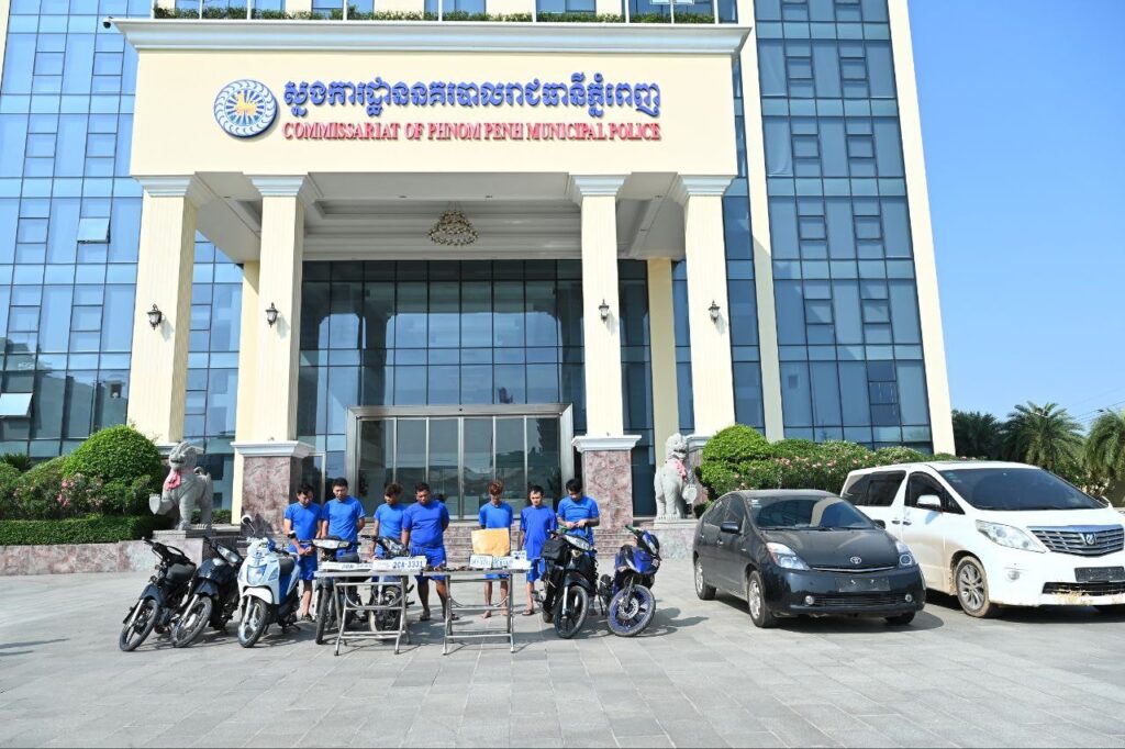 ដោយទទួលអនុវត្តតាមបទបញ្ជានិងមានការអនុញ្ញាតពី ឯកឧត្តមឧត្តមសេនីយ៍ឯក ជួន ណារិន្ទ អគ្គស្នងការរង និងជាស្នងការនគរបាលរាជធានីភ្នំពេញ នៅស្នងការដ្ឋាននគរបាលរាជធានីភ្នំពេញ នាព្រឹកថ្ងៃទី២៣ ខែមីនា ឆ្នាំ២០២៦លោកឧត្តមសេនីយ៍ត្រី ប៊ុន សត្យា ស្នងការរងផែនការងារនគរបាលព្រហ្មទណ្ឌ លោកឧត្តមសេនីយ៍ទោ លី ប៊ុនអេង ស្នងការរងទទួលដឹកនាំការិយាល័យនគរបាលព្រហ្មទណ្ឌកម្រិតស្រាល និងលោកវរសេនីយ៍ឯក ម៉ម សាវ៉ន នាយការិយាល័យនគរបាលព្រហ្មទណ្ឌកម្រិតស្រាល បានដឹកនាំកម្លាំងធ្វើការបង្ហាញមុខក្រុមជនសង្ស័យចំនួន០៩នាក់ជាសាធារណៈ ពាក់ព័ន្ធទៅនឹងសកម្មភាពរបស់ជនសង្ស័យទាំងនេះ ធ្វើសកម្មភាព ប្រព្រឹត្តបទល្មើស០៣ករណី ផ្សេងគ្នា ក្នុងរាជធានីភ្នំពេញ ។