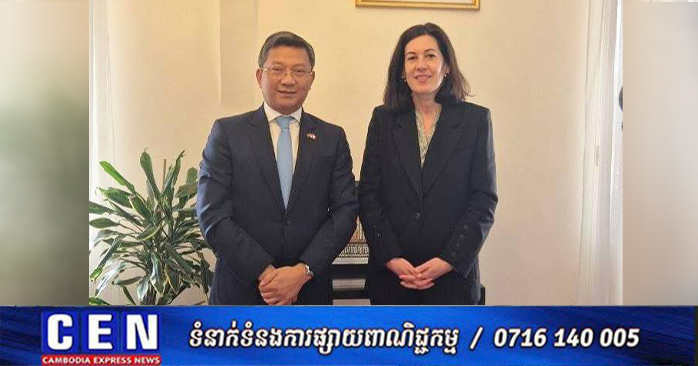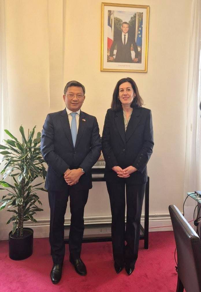 នារសៀលថ្ងៃទី២៣ ខែមីនា ឆ្នាំ២០២៦ ឯកឧត្តម លុយ ដាវីត ឯកអគ្គរាជទូតកម្ពុជា ប្រចាំនៅសាធារណរដ្ឋបារាំង បានអញ្ជើញចូលជួបពិភាក្សាការងារជាមួយលោកស្រី Julie Le Saos ទីប្រឹក្សាទទួលបន្ទុកតំបន់អាមេរិក អាស៊ី និងអូសេអានី របស់ប្រធានាធិបតីសាធារណរដ្ឋបារាំង ឯកឧត្តម Emmanuel Macron។