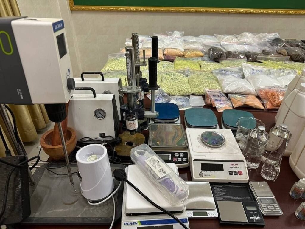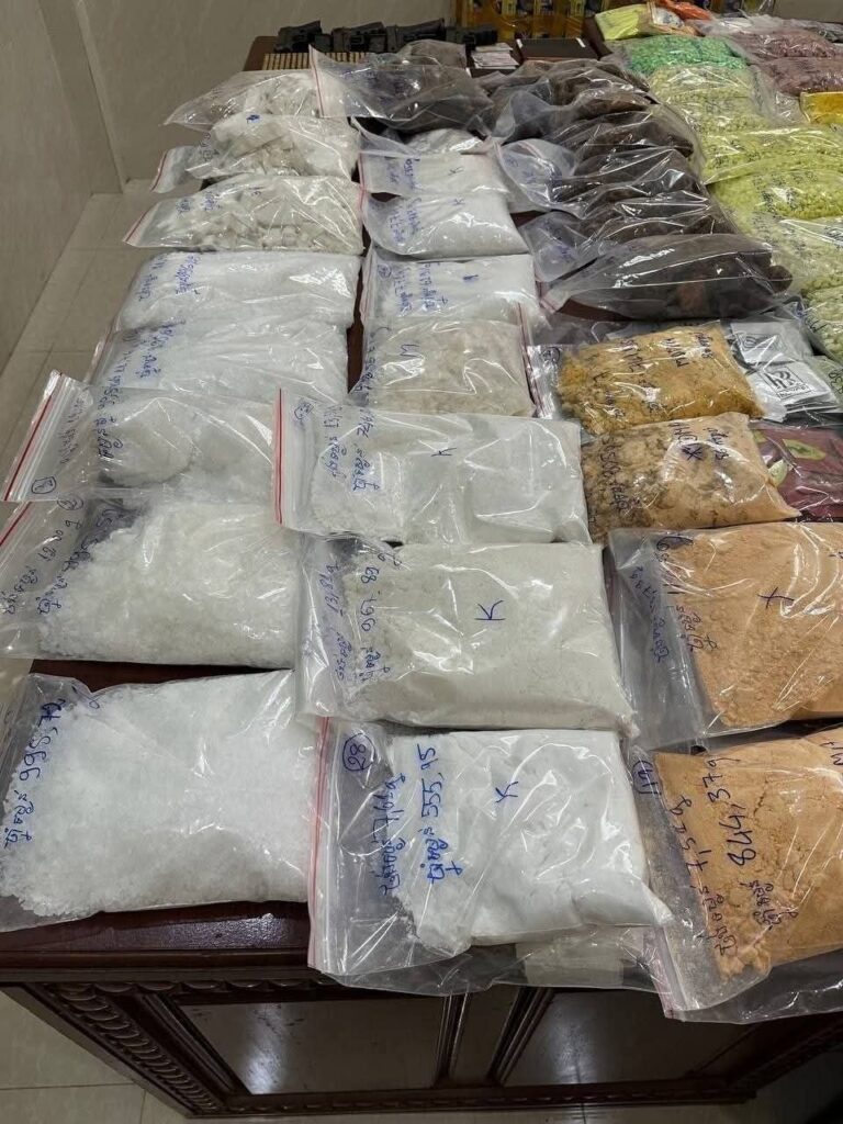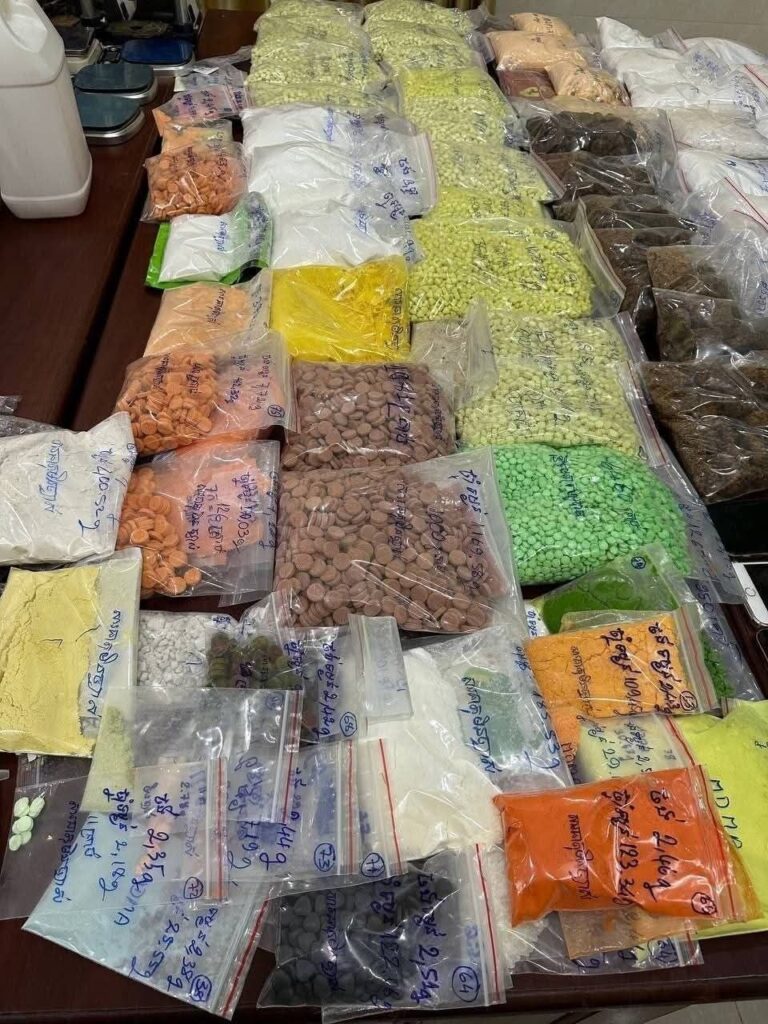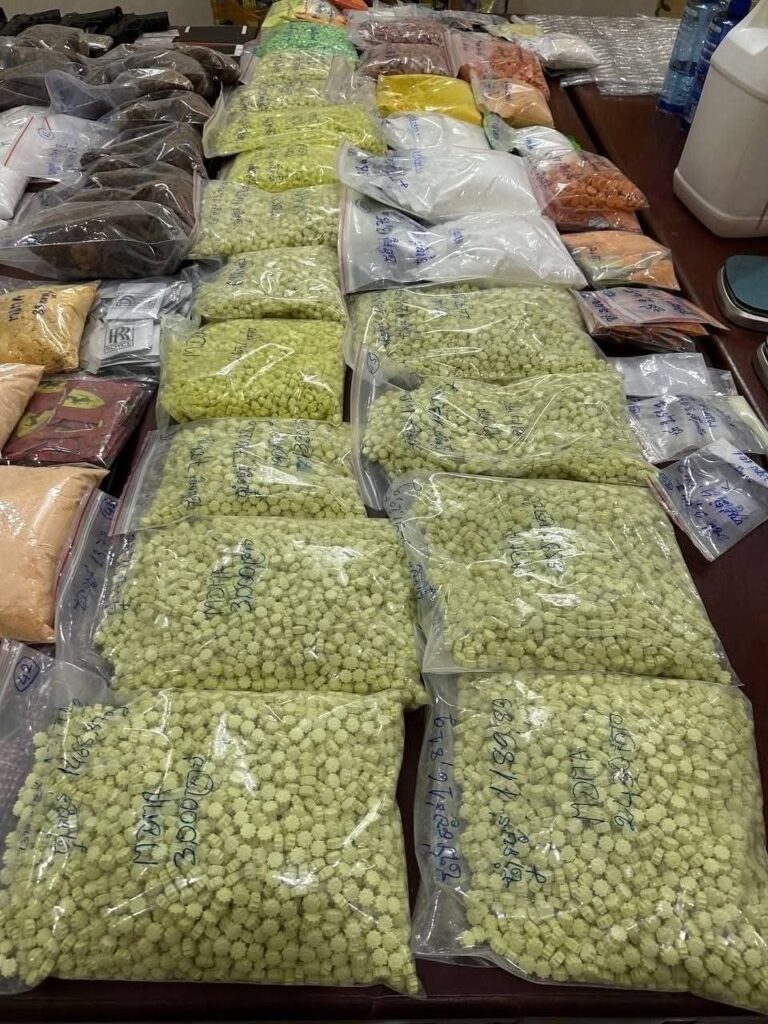 ដកហូតសម្ភារវត្ថុតាង សារធាតុញៀនគ្រប់ប្រភេទទម្ងន់ ៤៤គីឡូក្រាម៧៦៨,២២ក្រាម ក្នុងនោះ៖ថ្នាំញៀនប្រភេទកេតាមីន ទម្ងន់៨គីឡូ៦៤៣,៨៥ក្រាម ថ្នាំញៀនប្រភេទMDMA ទម្ងន់១៥គីឡូ៣៥៣,០៧ក្រាម ថ្នាំញៀនប្រភេទMDMAកញ្ចប់ ទម្ងន់៥គីឡូ៤២០,៩២ក្រាម