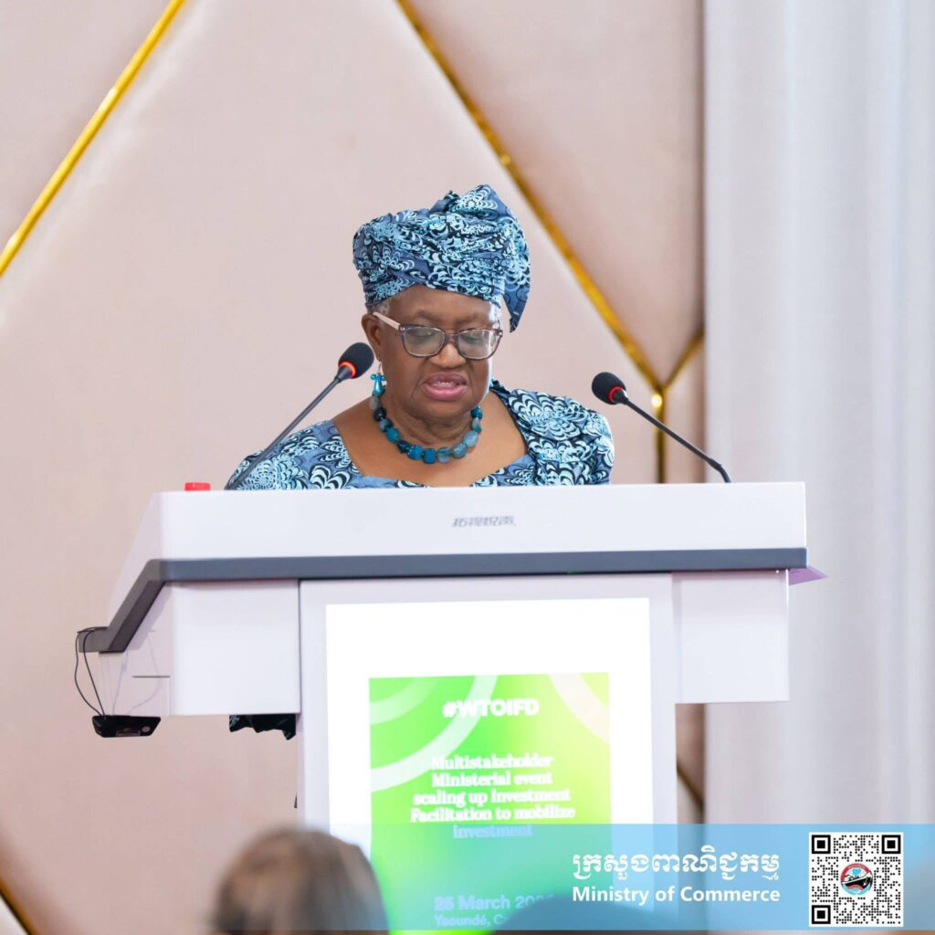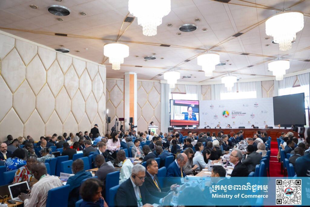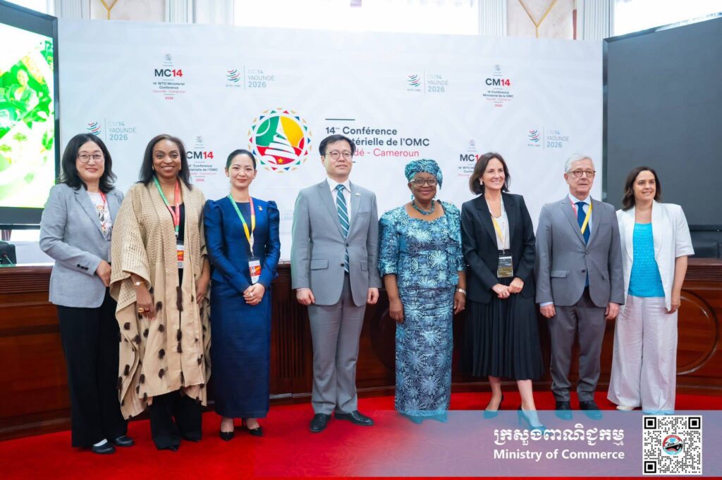 (យុនដេ, កាមេរូន): នារសៀលថ្ងៃពុធ ទី២៥ ខែមីនា ឆ្នាំ២០២៦ នៅទីក្រុងយុនដេ ប្រទេសកាមេរូន លោកជំទាវ ចម និម្មល រដ្ឋមន្ត្រីក្រសួងពាណិជ្ជកម្ម និងជាប្រធានគណៈប្រតិភូកម្ពុជា បានអញ្ជើញចូលរួមជាវាគ្មិននៅក្នុងព្រឹត្តិការណ៍ពហុភាគីថ្នាក់រដ្ឋមន្ត្រី ស្តីពី “ការលើកកម្ពស់កិច្ចសម្រួលវិនិយោគដើម្បីកៀរគការវិនិយោគ” ដែលរៀបចំដោយសាធារណរដ្ឋកូរ៉េ។ ព្រឹត្តិការណ៍ថ្នាក់រដ្ឋមន្ត្រីនេះ ត្រូវបានអញ្ជើញចូលរួមដោយសមាជិក WTO ទាំងសមាជិកទទួលបានប្រយោជន៍ និងសមាជិកម្ចាស់ជំនួយ ក៏ដូចជាអង្គការដៃគូអន្តរជាតិ ធនាគារវិនិយោគនិងធនាគារអភិវឌ្ឍន៍តំបន់និងពហុភាគី និងភាគីពាក់ព័ន្ធសំខាន់ៗមួយចំនួនទៀត។