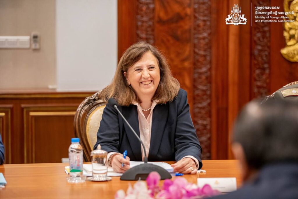 លោកស្រីបានបញ្ជាក់ជាថ្មីនូវការប្តេជ្ញា ចិត្តរបស់សហភាពអឺរ៉ុបក្នុងការពង្រឹងកិច្ចសហប្រតិបត្តិការដែលកំពុងដំណើរការ រួមទាំងការគាំទ្រដល់ការ ចាកចេញរបស់ប្រទេសកម្ពុជាពីឋានៈប្រទេសអភិវឌ្ឍន៍តិចតួច (LDC) ឆ្ពោះទៅរកការសម្រេចបានឋានៈជា ប្រទេសមានចំណូលមធ្យមកម្រិតខ្ពស់។