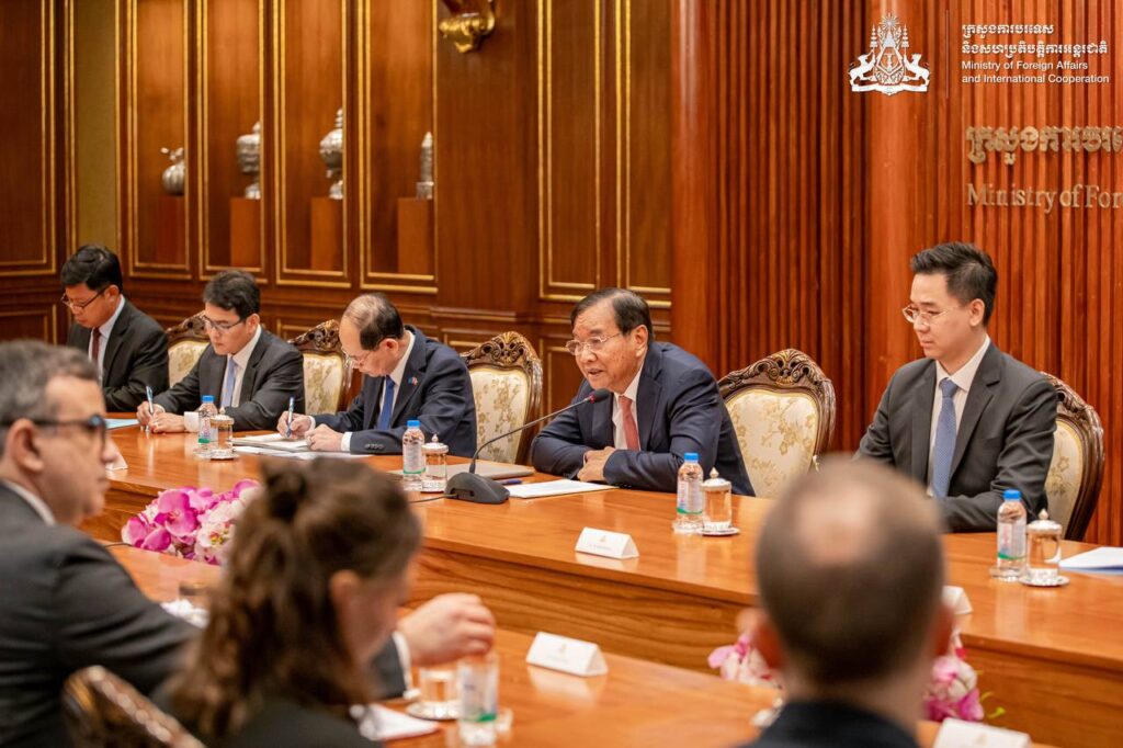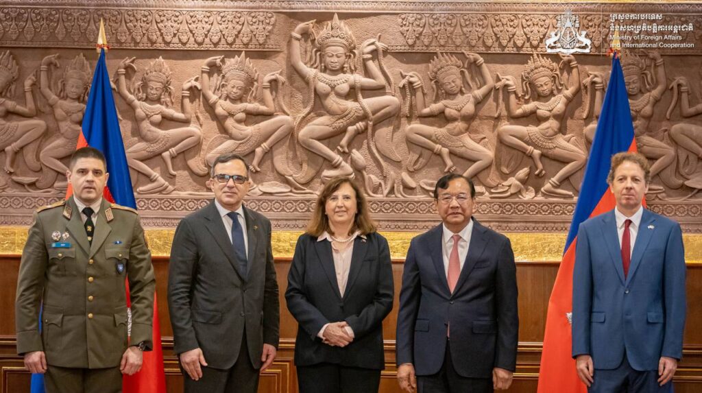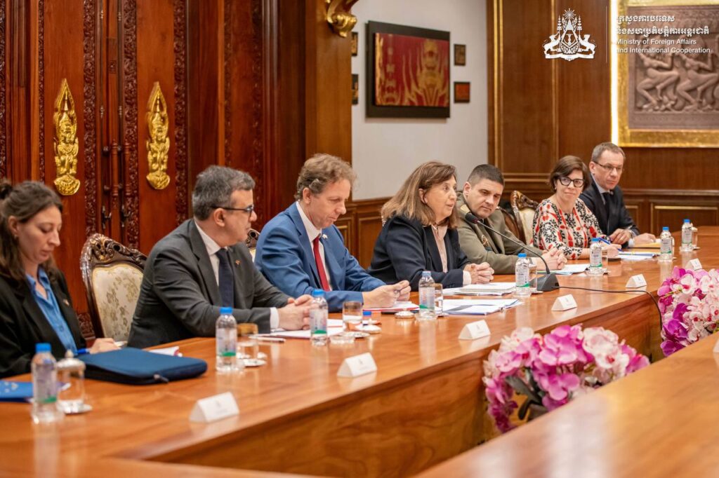 ភ្នំពេញ ៖ នៅថ្ងៃទី២៥ ខែមីនា ឆ្នាំ២០២៦ ឯកឧត្ដមឧបនាយករដ្ឋមន្ត្រី ប្រាក់ សុខុន រដ្ឋមន្ត្រីការបរទេស និង សហប្រតិបត្តិការអន្តរជាតិ បានអនុញ្ញាតឱ្យលោកស្រី Paola Pampaloni នាយិការងទទួលបន្ទុកអាស៊ី- ប៉ាស៊ីហ្វិក នៃមន្ទីរការបរទេសអឺរ៉ុប និងលោកឧត្តមសេនីយ៍ត្រី Danail BAEV ប្រធានផ្នែកស៊ើបការណ៍សម្ងាត់ នៃសេនាធិការយោធាសហភាពអឺរ៉ុប ចូលជួបសម្តែងការគួរសម និងពិភាក្សាការងារ នៅទីស្តីការក្រសួង ក្នុង ឱកាសដែលលោកស្រីចូលរួមកិច្ចប្រជុំគណៈកម្មាធិការចម្រុះកម្ពុជា-សហភាពអឺរ៉ុបលើកទី១៣ នៅថ្ងៃទី២៦
