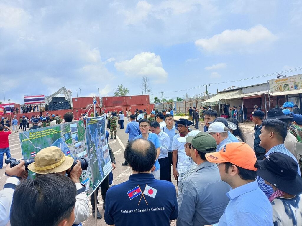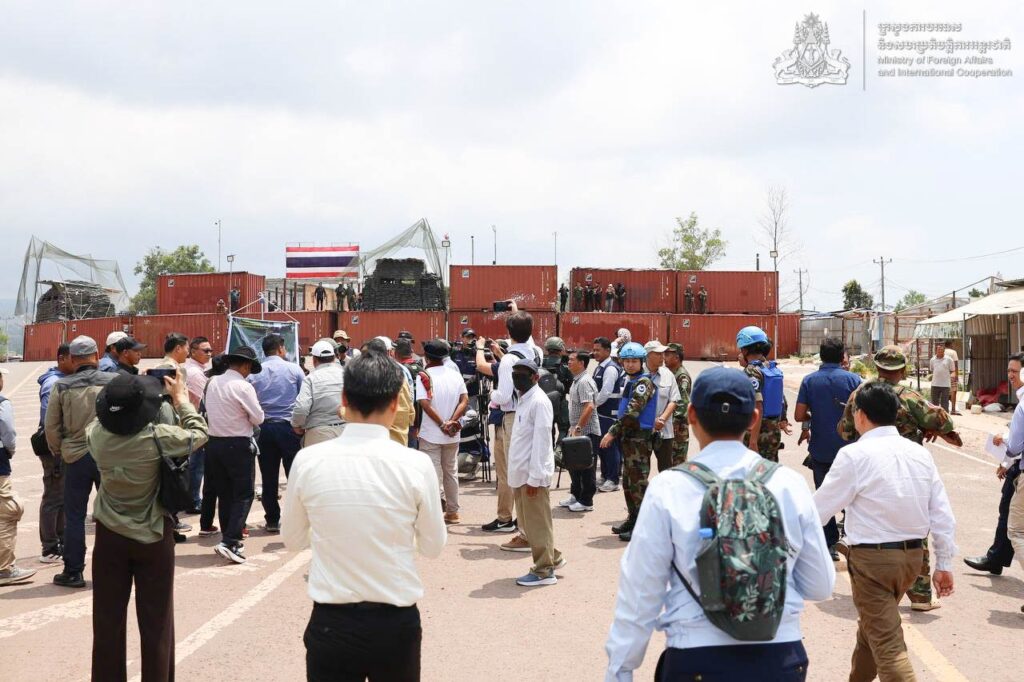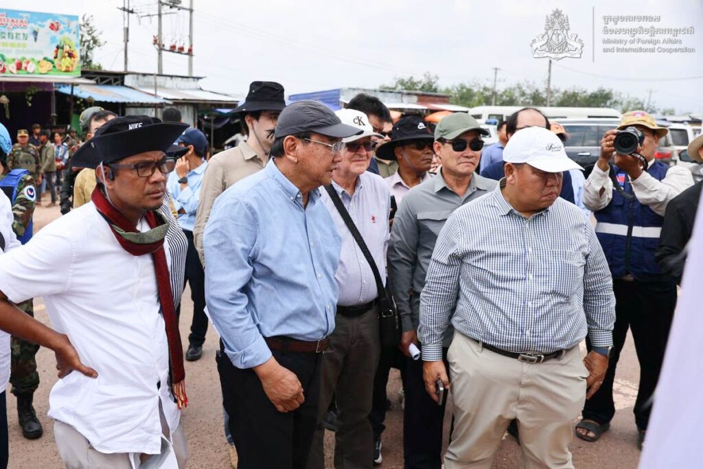 នៅថ្ងៃទី២៧ ខែមីនា ឆ្នាំ២០២៦ ឯកឧត្តមឧបនាយករដ្ឋមន្ត្រី ប្រាក់ សុខុន រដ្ឋមន្ត្រីនៃក្រសួងការបរទេស និងសហប្រតិបត្តិការអន្តរជាតិ បានដឹកនាំអង្គទូត និងតំណាងទីភ្នាក់ងារអង្គការសហប្រជាជាតិ និងអង្គការអន្តរជាតិប្រចាំកម្ពុជា ចុះពិនិត្យទីតាំង នៅឃុំថ្មដា ស្រុកវាលវែង ខេត្តពោធិ៍សាត់ នៃប្រទេសកម្ពុជា ដែលកងទ័ពថៃបានកាន់កាប់ដោយខុសច្បាប់ ហើយបន្តដាក់ពង្រាយទូកុងតឺន័រ និងបន្លាលួស។