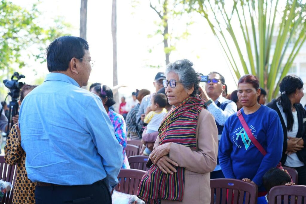ទន្ទឹមនឹងនេះ ឯកឧត្តមឧបនាយករដ្ឋមន្ត្រី និងគណៈប្រតិភូ ក៏បានជួបសួរសុខទុក្ខ និងនាំអំណោយជាគ្រឿងឧបភោគបរិភោគ ផ្តល់ជូនបងប្អូនពលរដ្ឋភៀសសឹកចំនួន៧៦គ្រួសារ ដែលកំពុងស្នាក់នៅក្នុងជំរំភៀសសឹកនៅវិទ្យាល័យ ហ៊ុន សែន ប្រម៉ោយ ក្នុងភូមិប្រម៉ោយ ឃុំប្រម៉ោយ ស្រុកវាលវែង ខេត្តពោធិ៍សាត់ ផងដែរ។