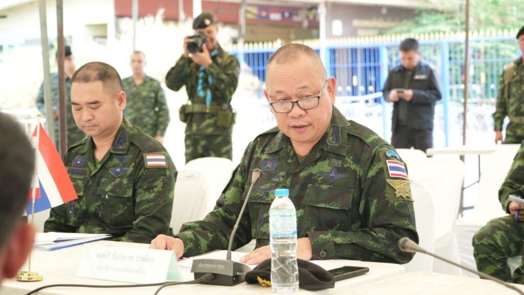 លោកជំទាវ ឧត្តមសេនីយ៍ឯក ម៉ាលី សុជាតា អ្នកនាំពាក្យក្រសួងការពារជាតិ នៃព្រះរាជាណាចក្រកម្ពុជា បានថ្លែងថា ក្រសួងការពារជាតិ នៃព្រះរាជាណាចក្រកម្ពុជា សូមជម្រាបជូនសាធារណជន អ្នកសារព័ត៌មានជាតិ និងអន្តរជាតិមេត្តាជ្រាបថា៖ នៅព្រឹកថ្ងៃទី២៣ ខែមេសា ឆ្នាំ២០២៦នេះ យោធភូមិភាគទី៤ ភាគីកម្ពុជា និងកងទ័ពភូមិភាគទី២ ភាគីថៃ បានជួបប្រជុំក្រៅផ្លូវការរបស់ក្រុមលេខាធិការដ្ឋាននៃគណៈកម្មាធិការព្រំដែនថ្នាក់យោធភូមិភាគកម្ពុជា-ថៃ (RBC) នៅវេលាម៉ោង ១១:០០នាទី នៅច្រកអន្តរជាតិជាំ-សាង៊ាំ ស្រុកអន្លង់វែង ខេត្តឧត្តរមានជ័យ។ គណៈប្រតិភូកម្ពុជាដឹកនាំដោយ ឧត្តមសេនីយ៍ត្រី និត ណារ៉ុង ប្រធានក្រុមលេខាធិការ (RBC) កម្ពុជា និងគណៈប្រតិភូថៃដឹកនាំដោយ ឧត្តមសេនីយ៍ត្រី កាំផាក់ណាក វាផាន់ស៊ុ ប្រធានក្រុមលេខាធិការ (RBC ) ថៃ។
