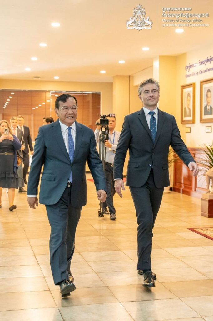 ភ្នំពេញ ៖ នៅព្រឹកថ្ងៃទី២៤ ខែមេសា ឆ្នាំ២០២៦ ឯកឧត្តម ប្រាក់ សុខុន ឧបនាយករដ្ឋមន្ត្រី រដ្ឋមន្ត្រីការបរទេស និងសហប្រតិបត្តិការអន្តរជាតិនៃព្រះរាជាណាចក្រកម្ពុជា បានជួបពិភាក្សាទ្វេភាគីប្រកបដោយផ្លែផ្កាជាមួយឯកឧត្តម កេស្ទូទីស ប៊ូឌ្រីស រដ្ឋមន្រ្តីការបរទេសនៃសាធារណរដ្ឋលីទុយអានី ក្នុងអំឡុងពេលនៃការបំពេញទស្សនកិច្ចផ្លូវការរបស់ឯកឧត្តមរដ្ឋមន្រ្តី នៅព្រះរាជាណាចក្រកម្ពុជា ពីថ្ងៃទី២៤-២៥ ខែមេសា ឆ្នាំ២០២៦។