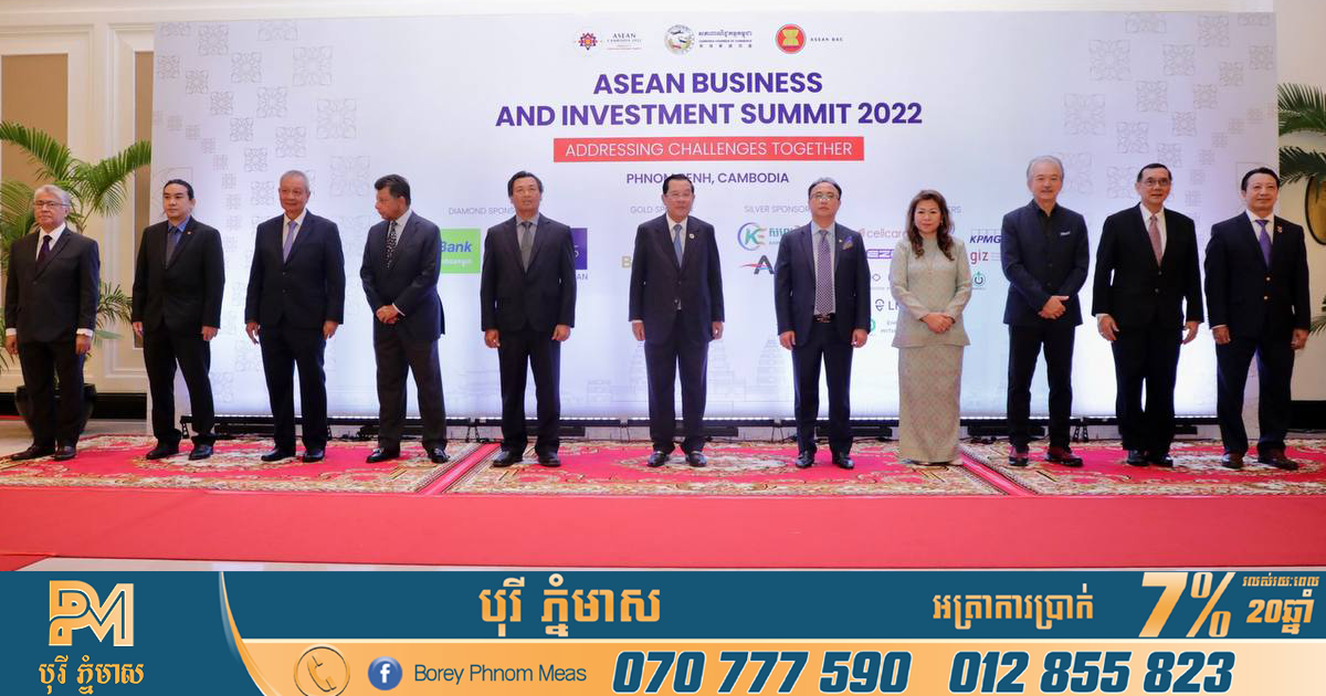 សម្តេចតេជោ ហ៊ុន សែន បានថ្លែង «ក្នុងនាមជាប្រធានអាស៊ានឆ្នាំ ២០២២ កម្ពុជាសូមផ្ដល់ការគាំទ្រយ៉ាងពេញទំហឹងចំពោះកិច្ចប្រជុំកំពូលធុរកិច្ច និង វិនិយោគអាស៊ាន »។ សម្តេចតេជោ បានបន្តថា «កម្ពុជាសូមសម្ដែងការប្តេជ្ញាចិត្ត ក្នុងការសហការ ជាមួយនឹងបណ្តាប្រទេសសមាជិកអាស៊ាន និង ដៃគូសន្ទនាអាស៊ានទាំងអស់ ដើម្បីដឹកនាំសហគមន៍សេដ្ឋកិច្ចអាស៊ាន ឆ្ពោះទៅរកភាពធន់រឹងមាំ ចីរភាព បរិយាប័ន្ន និង ភាពប្រកួតប្រជែងខ្ពស់ »។