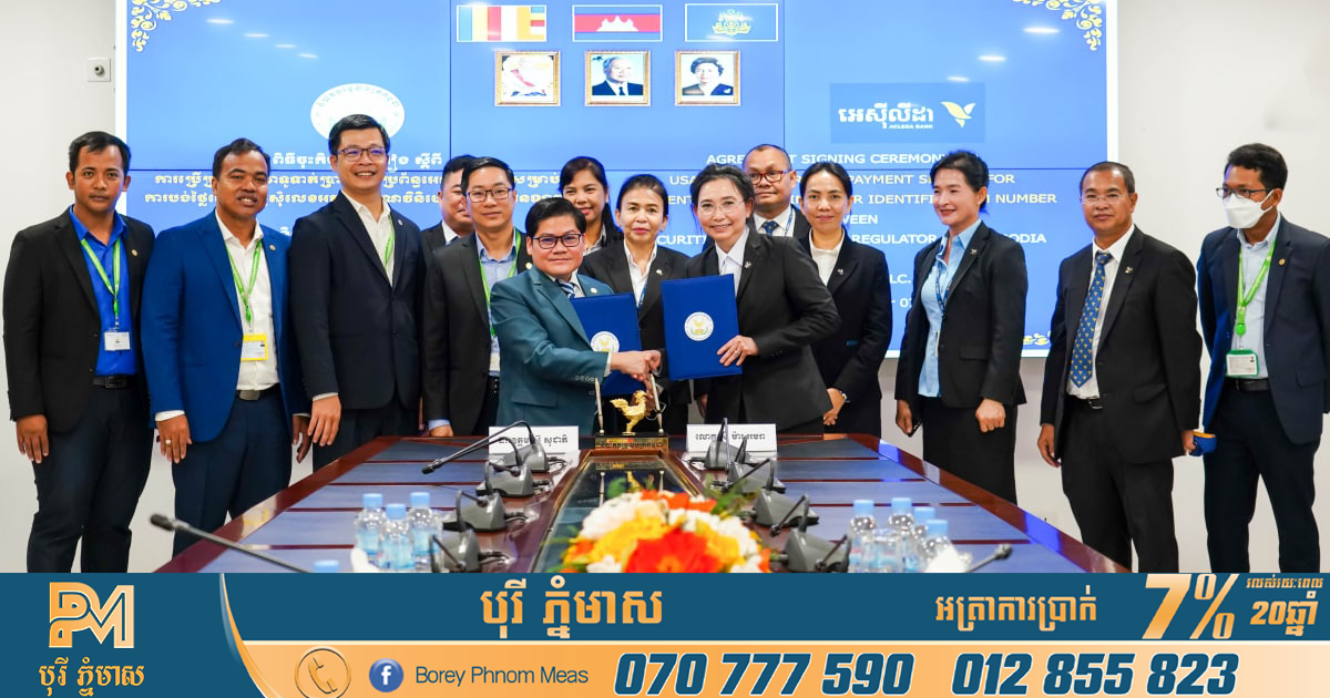 ក្នុងឱកាសនោះ ឯកឧត្តម ស៊ូ សុជាតិ ប្រតិភូរាជរដ្ឋាភិបាលទទួលបន្ទុកជាអគ្គនាយកនៃនិយ័តករមូលបត្រកម្ពុជា បានមានប្រសាសន៍ថា គោលបំណងនៃកិច្ចព្រមព្រៀងនេះ នឹងជួយសម្រួលដល់ការទូទាត់ថ្លៃសេវាស្នើសុំលេខអត្តសញ្ញាណវិនិយោគិនរបស់បុគ្គលស្នើសុំទាំងក្នុងស្រុក និង បរទេស ដើម្បីធ្វើការវិនិយោគមូលបត្រនៅទីផ្សារមូលបត្រកម្ពុជា។
