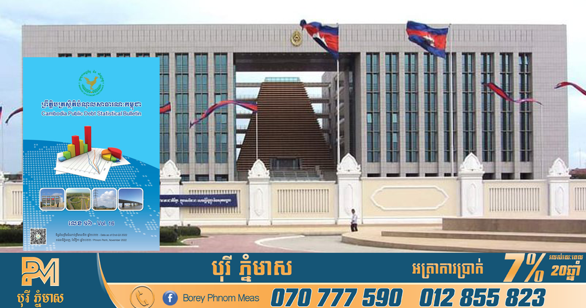 ក្នុងចំណោមបំណុលសាធារណៈសរុប ៩ ៤៧៤លានដុល្លារអាម៉េរិក មាន៩ ៤៦៤លានដុល្លារ ជាបំណុលក្រៅបរទេស និងជាង ១០លានដុល្លារ ជាបំណុលក្នុងប្រទេស។ បើយោងតាមក្រសួងសេដ្ឋកិច្ច និងហិរញ្ញវត្ថុ បំណុលដែលកម្ពុជាមាននេះ គឺត្រឹមដំណាច់ត្រីមាសទី៣ ឆ្នាំ២០២២។