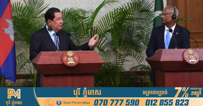 សម្តេចតេជោ ហ៊ុន សែន នាយករដ្ឋមន្ត្រីនៃកម្ពុជា បានបង្ហាញបំណងក្នុងការជំរុញការធ្វើពាណិជ្ជកម្មរវាងកម្ពុជា-ម៉ាល់ឌីវ តាមរយៈការនាំចេញនាំចូលនូវទំនិញសក្តានុពលខ្ពស់មួយចំនួនរបស់កម្ពុជា។