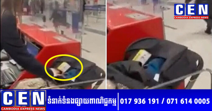 នៅក្នុងវីដេអូដែលបានរីករាលដាលនៅលើបណ្តាញសង្គម បានបង្ហាញឲ្យឃើញបុគ្គលិកក្រុមហ៊ុន Ryanair បានលើកកន្សែងចេញពីរទេះរុញ ហើយបានរកឃើញទារកនៅខាងក្នុង។
