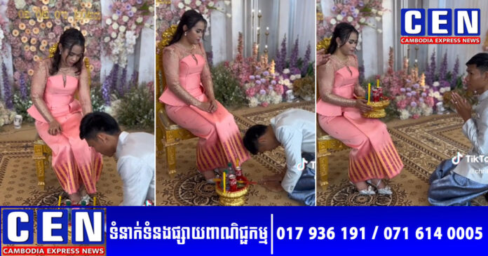 វីដេអូ TikTok នៃពិធីមង្គលការមួយដែលគេជឿថា នៅក្នុងខេត្តសៀមរាប បានធ្វើឲ្យមហាជននៅលើបណ្តាញសង្គម ពិតជាមានការភ្ញាក់ផ្អើលយ៉ាងខ្លាំង ខណៈបានឃើញកូនកំលោះ ក្រាបថ្វាយបង្គំខមាលទោស ដល់បងស្រីបង្កើតរបស់ខ្លួនដែលមិនទាន់ដល់គូ ដែលមនុស្សជាច្រើនពុំធ្លាប់ឃើញពីមុនមក។