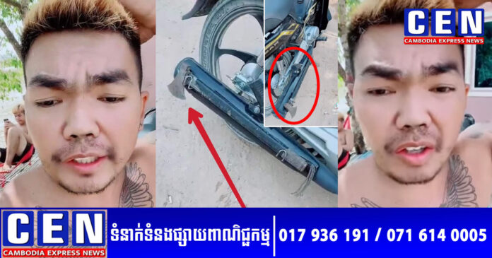 តាមរយៈវីដេអូរយៈពេល១នាទី អ្នកនិយមលេងបណ្តាញសង្គម TikTok រូបនេះ បានថតបង្ហាញ «ពូថៅដងដែក» ស្តែងៗ ដាក់សៀតជាប់នឹងកាងបំពង់ស៊ីម៉ាំងម៉ូតូ Dream សង់ស៊េរី023 ១គ្រឿង ដោយនិយាយយ៉ាងដូច្នេះថា៖ «២៣ ខេត្តណាមិនដឹងទេ តែ២៣ខេត្តតាកែវ ជិះបានតែចឹងទេ ហើយ២៣ខេត្តតាកែវ ប្លែកបន្តិច គឺប្លែកត្រង់ថាកាងស៊ីម៉ាំងវាអ៊ីចិ… ២៣ស្រុកខ្ញុំជិះបានតែចឹង ជិះកាងហ្ស៊ីនដូចគេ អត់ឡូយទេ….»។