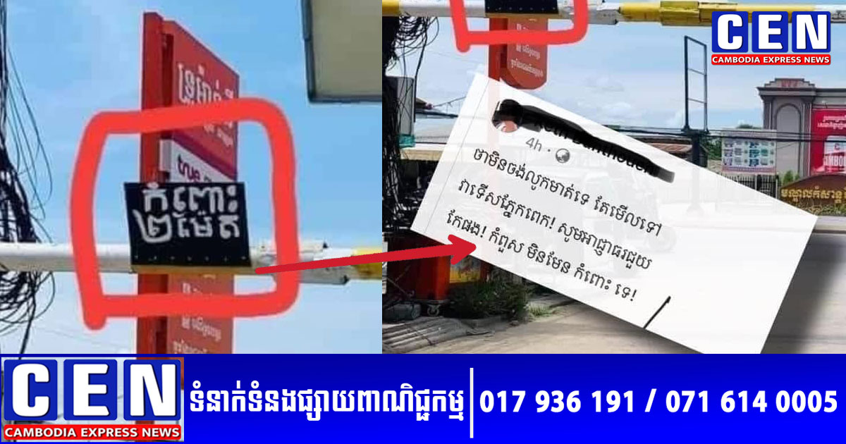 ជាក់ស្តែង តាមរយៈរូបភាពនៃកម្ពស់ច្រកចូលមួយកន្លែង ត្រូវបានដាក់ស្លាកសរសេរថា៖ «កំពោះ២ម៉ែត»។ ក្រោយពីបានឃើញហួសចិត្តខ្លាំងពេក គណនីហ្វេសប៊ុកមួយ ក៏បានយករូបភាពនេះ មកផុសកែតម្រូវឡើងវិញ ដោយបានសរសេរបែបនេះថា៖ «ថាមិនចង់លូកមាត់ទេ តែមើលទៅវាទើសភ្នែកពេក! សូមអាជ្ញាធរជួយកែផង! កំពួស មិនមែន កំពោះ ទេ!»។
