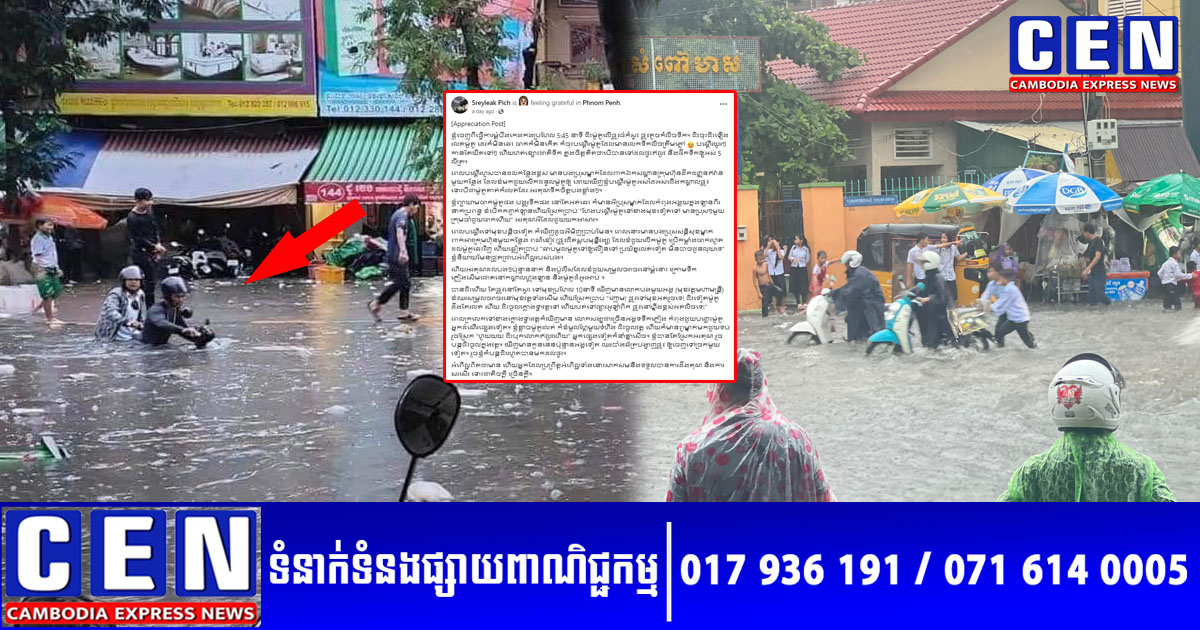 ដូចដែលប្រិយមិត្តបានទទួលជ្រាបហើយ កាលពីថ្ងៃទី៣ ខែកក្កដា ឆ្នាំ២០២៣ មានភ្លៀងធ្លាក់យ៉ាងខ្លាំង ដែលបណ្តាលឲ្យផ្លូវតូចធំ សឹងតែគ្រប់ទីកន្លែងក្នុងរាជធានីភ្នំពេញ ត្រូវទឹកជន់លិចប្រៀបដូចទន្លេអ៊ីចឹង ខណៈផ្ទះសំបែងប្រជាពលរដ្ឋវិញ ក៏ត្រូវលិចលង់ ហើយផ្ទះមួយចំនួនរកកន្លែងដេកពួនគ្មាននោះទេ។