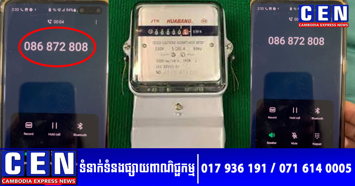 ក្នុងវីដេអូឃ្លីបដែលម្ចាស់ផ្ទះបានថត បានបង្ហាញលេខទូរស័ទ្ទដែលជនឆបោកបានខលមកនោះ គឺ 086 872 808។ ក្នុងនោះ ជនរូបនោះ បានឆបោកប្រាប់ថា «ឌឺហ្សង់ទ័រគីឡូភ្លើង» របស់ម្ចាស់ផ្ទះបានខូចហើយ ហេតុដូច្នេះ ត្រូវតែផ្លាស់ប្តូរដាក់គីឡូភ្លើងថ្មី។ លឺបែបនេះ ម្ចាស់ផ្ទះបានឆ្លើយ «OK» អត់អីទេ អាចចុះមកប្តូរបាន។ តែទន្ទឹមនឹងនេះ ជនឆបោកក៏បានបញ្ជាក់ថា តាមគោលករណ៍ចុះមកប្តូរដុំគីឡូភ្លើងថ្មីឲ្យបាន គឺលុះត្រាតែវេរលុយសេវាចំនួន ១២ ម៉ឺន ៥ពាន់រៀល ឲ្យជាមុនសិន។