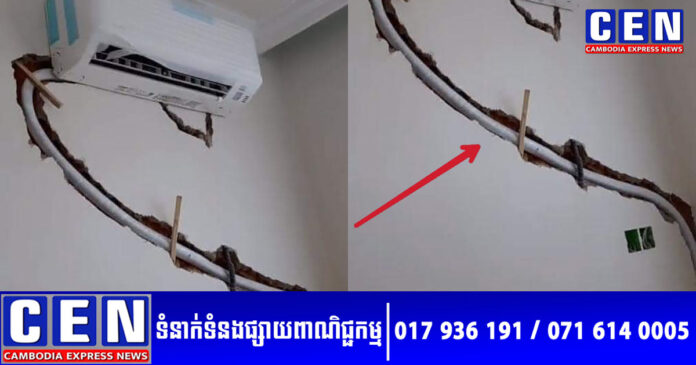 នេះបើតាមគណនីហ្វេសប៊ុកឈ្មោះ Perfect Rider នៅថ្ងៃទី១៦ ខែសីហា ឆ្នាំ២០២៣ បានបង្ហោះរូបភាព១សន្លឹក និងប្រាប់ឲ្យគ្រប់គ្នាបានដឹងថា «ដំឡើងម៉ាស៊ីនត្រជាក់ថ្មីនៅផ្ទះ ម្ចាស់ផ្ទះប្រាប់ជាងថា សុំដាក់បំពង់ត្រជាក់បង្កប់ក្នុងជញ្ជាំង។ មានឯណា ជាងរៀបចំឲ្យម៉ាសិត រួចទៅផ្ទះបាត់ ឥឡូវលទ្ធផលគឺបែបនេះ…»។