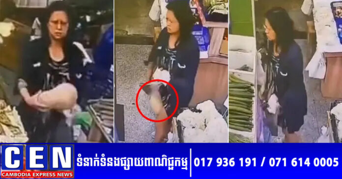 តែយ៉ាងណាមិញ ទង្វើដ៏មិនថ្លៃថ្នូររបស់ស្រ្តីរូបនេះ ត្រូវបានលាតត្រដាង គឺបន្ទាប់ពីប្រតិបត្តិករផ្សារ បានធ្វើការឆែកកាមេរ៉ាឃ្លាំមើល ដើម្បីពិនិត្យ បន្ទាប់ពីអាជីវករបានត្អូញត្អែរ ពីការបាត់បង់។