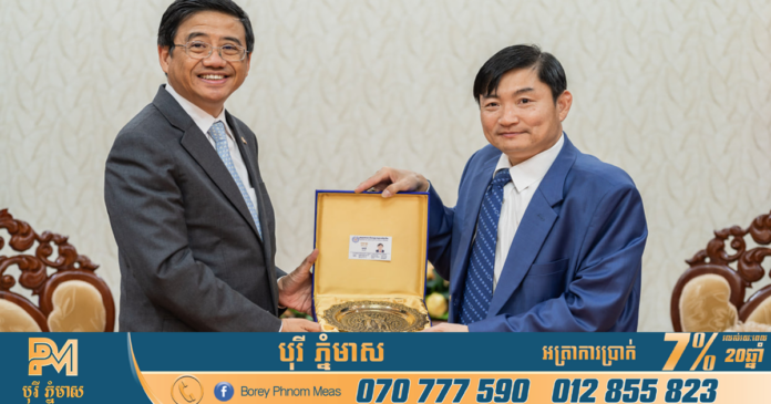 ភ្នំពេញ៖ កម្ពុជា-ថៃ បានគូសបញ្ជាក់ពីកិច្ចសហប្រតិបត្តិការលើវិស័យការងារ និងបណ្តុះបណ្តាលវិជ្ជាជីវៈនេះ តាមរយៈជំនួបរវាងឯកឧត្តម ហេង សួរ រដ្ឋមន្ត្រីក្រសួងការងារ និងបណ្តុះបណ្តាលវិជ្ជាជីវៈ ជាមួយឯកឧត្តម ឆឺតកៀក អាត់ថាក័រ (Cherdkiat ATTHAKOR) អគ្គរាជទូតថៃប្រចាំព្រះរាជាណាចក្រកម្ពុជានៅរសៀលថ្ងៃទី២១ ខែកញ្ញា ឆ្នាំ២០២៣។ ភាគីទាំងពីរ បានឯកភាពបន្តពង្រឹងកិច្ចសហប្រតិបត្តិការលើវិស័យការងារ និងបណ្តុះបណ្តាលវិជ្ជាជីវៈឱ្យកាន់តែមានប្រសិទ្ធភាពបន្ថែមទៀត ដើម្បីរក្សាបានប្រយោជន៍ជូនពលរដ្ឋទាំងសងខាង។