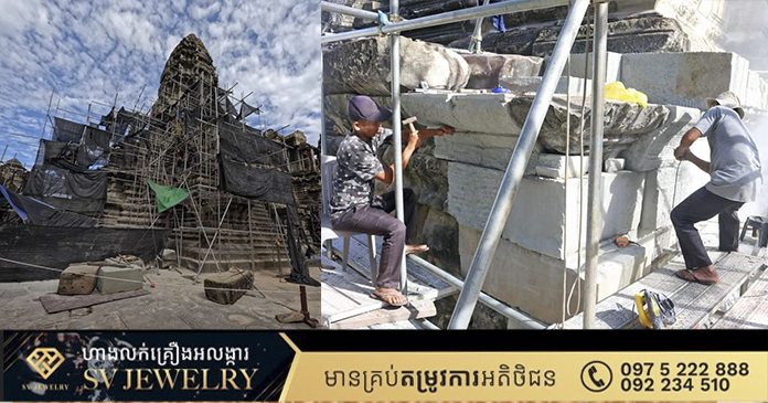 សៀមរាប៖ មន្ត្រីជំនាញអភិរក្សថ្មរបស់នាយកដ្ឋានអភិរក្សប្រាសាទ និងបុរាណវិទ្យា នៃអាជ្ញាធរជាតិអប្សរា ឱ្យដឹងថា រហូតមកដល់ត្រឹមថ្ងៃទី២៥ ខែកញ្ញា ឆ្នាំ២០២៣នេះ ក្រុមការងារបច្ចេកទេសជួសជុលខឿនបាកាណរបស់ប្រាសាទអង្គរវត្ត គឺបានជួសជុលពង្រឹងការខូចខាតផ្នែកខ្លះនៃខឿនថ្មឱ្យបានដូចដើមឡើងវិញ ដូចជា បានរុញថ្មដែលញែកចេញពីគ្នាឱ្យចូលជាប់គ្នាវិញ ពង្រឹងគ្រឹះឱ្យរឹងមាំ ដោយប្រើលោហជាតិអ៊ីណុកទាម ដើម្បីទប់លំនឹងនៅតាមទីតាំងដែលថ្មងាយនឹងរបេះ។