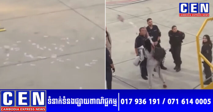 បន្ទាប់ពីយន្តហោះចុះចតនៅទីក្រុងវីយែន ប៉ូលិសបាននាំស្ត្រីនោះចុះពីយន្តហោះមុនគេ ហើយបន្ទាប់មក បុរសជាបរទេសនោះក៏បានចុះពីលើយន្តហោះតាមក្រោយ។ ប៉ុន្តែ នៅពេលដែលបុរសនោះ ប៉ុនប៉ងយកប្រាក់ពីកាបូបរបស់ស្ត្រីជាដៃគូរបស់គាត់។ នៅពេលនោះ ស្ត្រីរូបនោះស្រាប់តែគប់ក្រដាសប្រាក់មួយចំនួនធំ ខ្ចាត់ខ្ចាយពាសពេញលើផ្លូវព្រលានយន្តតែម្តង ដែលត្រូវបានដឹងថាមានចំនួនអស់ ៥.០០០ ផោន។