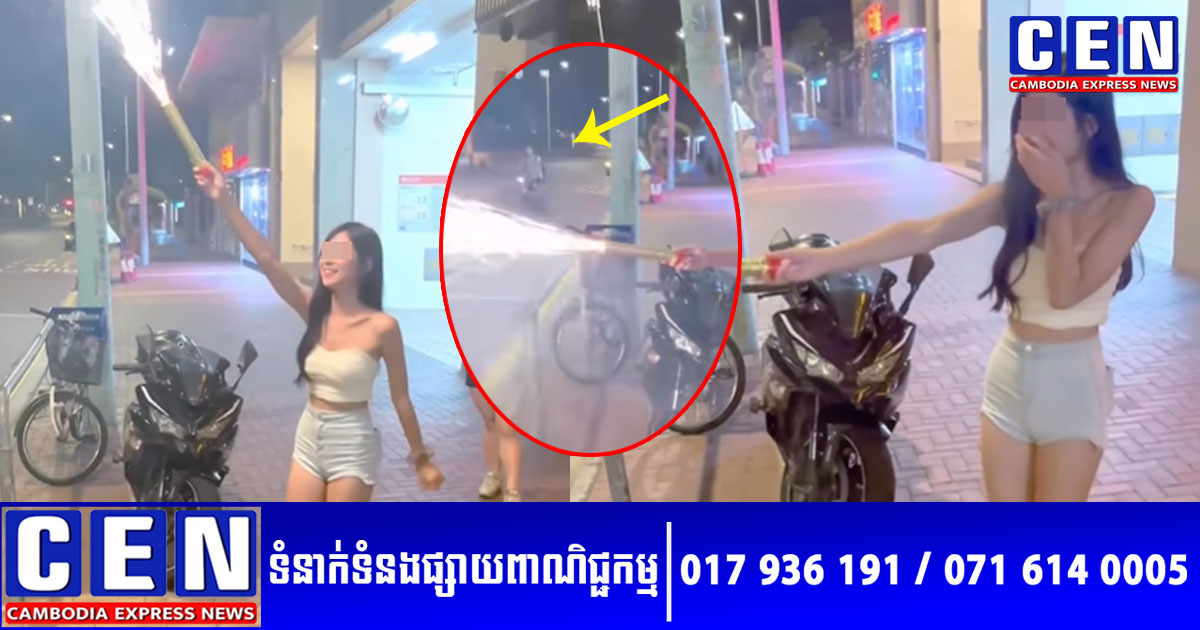 យោងតាមសេចក្តីរាយការណ៍ ហេតុការណ៍នេះបានកើតឡើងនៅព្រឹកព្រលឹមថ្ងៃទី៣០ ខែកញ្ញា នៅលើចិញ្ចើមផ្លូវខាងក្រៅអគារលំនៅដ្ឋានមួយកន្លែង ក្នុងសង្កាត់ Yuan Long ទីក្រុងហុងកុង។ ស្រីស្អាតនោះស្លៀកស៊ិចស៊ី បានឈរនៅខាងមុខផ្ទះ កាន់កាំជ្រួចដុតលេង ដើម្បីភាពសប្បាយរីករាយ ខណៈជុំវិញនាងមានមនុស្សថតលេងសើចយ៉ាងសប្បាយ។