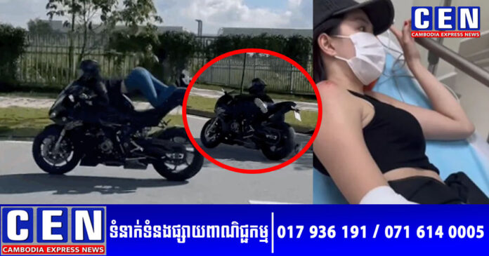ថ្មីៗនេះ វីដេអូឃ្លីបស្រីស្អាតម្នាក់ បើកម៉ូតូធំ ជាមួយស្ទាយល៍ «សេះហោះ» យ៉ាងឡូយ តែភ្លាត់ស្នៀត បណ្តាលឲ្យដួលឡើងច្រងាប់ច្រងិល និងរងរបួសយ៉ាងដំណំ បានធ្វើឲ្យមនុស្សជាច្រើន សើចចំអក និងរិះគន់យ៉ាងខ្លាំង។