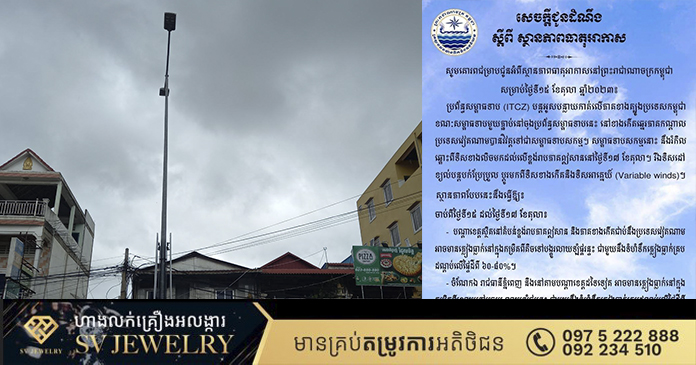 - ចំណែកឯ រាជធានីភ្នំពេញ និងនៅតាមបណ្តាខេត្តដទៃទៀត អាចមានភ្លៀងធ្លាក់នៅក្នុង កម្រិតពីខ្សោយទៅមធ្យម លាយឡំផ្គររន្ទះ ជាមួយនឹងទំហំទឹកភ្លៀងធ្លាក់គ្របដណ្ដប់លើផ្ទៃដីព ៥០-៦០%៕ រក្សាសិទ្ធដោយ ៖ សុទ្ធលី