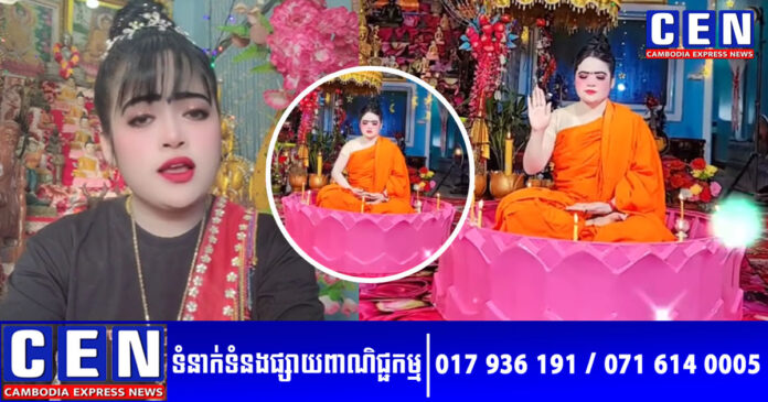 តែដោយឡែក ថ្មីៗនេះ មហាជនបានផ្ទុះការភ្ញាក់ផ្អើល និងហួសចិត្តខ្លាំងទៀតហើយ ខណៈបានឃើញវីដេអូកំពុងត្រូវបានចែករំលែកតៗគ្នាឡើងព្រោងព្រាត បង្ហាញគ្រូស្រីរូបនេះបានយក «ស្បង់ចីពរ» របស់ព្រះសង្ឃ មកគ្រងធ្វើដូចជាព្រះពុទ្ធ កំពុងត្រាស់ដឹងអ៊ីចឹង ដែលនេះគឺជាទង្វើធ្វើឲ្យប៉ះពាល់ដល់ព្រះពុទ្ធសាសនាយ៉ាងខ្លាំង។