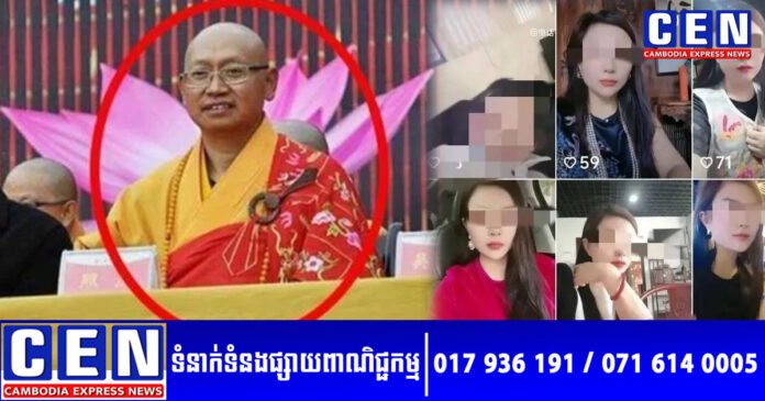 ព្រះចៅអធិការវត្តដ៏ល្បីល្បាញមួយក្នុងប្រទេសចិន មានទំនាក់ទំនងស្នេហាជាមួយប្រពន្ធគេ ហើយត្រូវបានបុរសប្តីចាប់បាន ទាមទារប្រាក់ ៣.២ លានយន់ (ស្មើនឹង ៤៤ ម៉ឺនដុល្លារអាមេរិក)។
