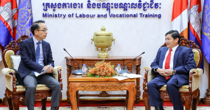 ភ្នំពេញ៖ ក្រសួងការងារ និងបណ្តុះបណ្តាលវិជ្ជាជីវៈ និងក្រុមហ៊ុនHD HYUNDAI HEAVY INDUSTRIA របស់កូរ៉េខាងត្បូង បានសម្រេចបង្កើតកិច្ចសហប្រតិបត្តិការអភិវឌ្ឍធនធានមនុស្សនៅកម្ពុជាលើវិស័យឧស្សាហកម្មធុនធ្ងន់។ ការសម្រេចនេះ គឺធ្វើឡើងក្នុងកិច្ចពិភាក្សាត្រីភាគីរវាងឯកឧត្តម ហេង សួរ រដ្ឋមន្ត្រីក្រសួងការងារ និងបណ្តុះបណ្តាលវិជ្ជាជីវៈ និងឯកឧត្តម Park Jung Wook អគ្គរដ្ឋទូតកូរ៉េខាងត្បូងប្រចាំព្រះរាជាណាចក្រកម្ពុជា និងលោក Kim Dong il អគ្គនាយករងក្រុមហ៊ុន HD HYUNDAI HEAVY INDUSTRIA ដែលភាគច្រើនផលិតនាវា និងកប៉ាល់ធំៗនៅក្នុងប្រទេសកូរ៉េខាងត្បូង។