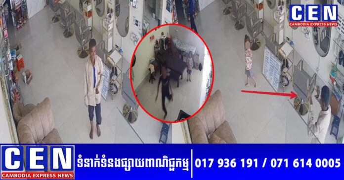 តាមរយៈវីដេអូកាមេរ៉ាសុវត្ថិភាព ហេតុការណ៍ដ៏ញាក់សាច់នេះ បានកើតឡើងនៅវេលាម៉ោង ១១ ព្រឹកថ្ងៃទី១៦ ខែវិច្ឆិកា ឆ្នាំ២០២៣ ស្ថិតនៅចំណុចផ្ទះសាឡនមួយកន្លែងនៅក្នុងខេត្តតាកែវ ខណៈម្ចាស់ផ្ទះដែលមានគណនីហ្វេសប៊ុកឈ្មោះ Chinda Salonn បានបង្ហោះរៀបរាប់ទាំងអារម្មណ៍ហួសចិត្តបែបនេះថា៖ «សរសើរអ៊ំ គាត់អ្នកដើរសុំលុយ គាត់ហ៊ានដល់កហើយ ថាក្មេងទៅវាខ្លាច ឯងឃើញគាត់ហ៊ានចឹង ភ័យជាក្មេងៗទៀត ដល់ហ៊ានអញ្ចឹងពេក អ៊ំហើយអ៊ំកប់យោបល់ម៉ង»។