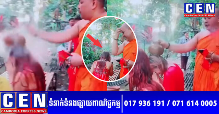 ជាក់ស្តែង តាមរយៈវីដេអូបានបង្ហាញព្រះសង្ឃអង្គនោះ បានកាន់ធូប សូត្រធម៌បណ្តើរ និងដួសទឹកពីក្នុងពាងស្រោចបណ្តើរ ហើយចុងក្រោយ ក៏យក «ក្អម» វាយក្បាលមួយទំហឹង រហូតធ្វើឲ្យនារីម្នាក់ក្នុងចំណោមនោះ ត្រូវបានឮស្រែកថ្នូរឈឺមិនស្ទើរនោះទេ ខណៈក្រឡេកមកមើលព្រះសង្ឃអង្គនេះវិញ ក៏ទប់សំណើចពុំជាប់នោះទេ ក្រោយពីបានឮប្រតិកម្មស្រែកថ្នូរឈឺរបស់នារីនោះ។