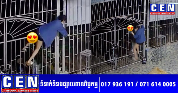 តាមរយៈវីដេអូឃ្លីបបានបង្ហាញស្រីស្អាតរូបនោះ ដែលមកផ្ទះទាំងកណ្តាលអាធ្រាត្រ ប៉ុន្តែ ដោយសារតែមិនមានកូនសោចូលផ្ទះ នាងក៏បានព្យាយាមឡើងលើទ្វារដែកផ្ទះតែម្តង។