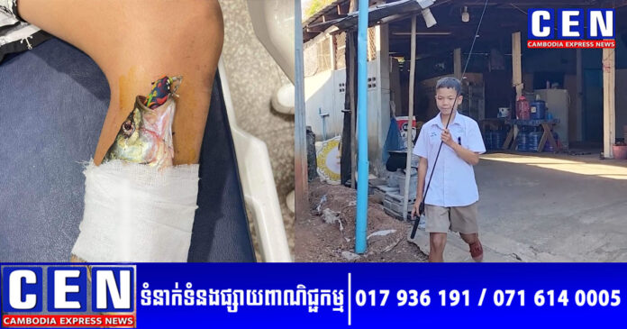 ថ្មីៗនេះ មានរឿងដ៏កម្រមួយ បានធ្វើឲ្យអ្នកលេងបណ្តាញសង្គមមានការភ្ញាក់ផ្អើលយ៉ាងខ្លាំង បន្ទាប់ពីបានឃើញរូបភាពក្មេងប្រុសម្នាក់ បាននាំត្រីដ៏ធំមួយក្បាលចងជាប់នឹងជើង ទៅកាន់មន្ទីរពេទ្យ ដែលធ្វើឲ្យមនុស្សជាច្រើន មានការងឿងឆ្ងល់ថា មិនដឹងជាមានរឿងអ្វីកើតឡើងទៅលើក្មេងរូបនោះទេ។
