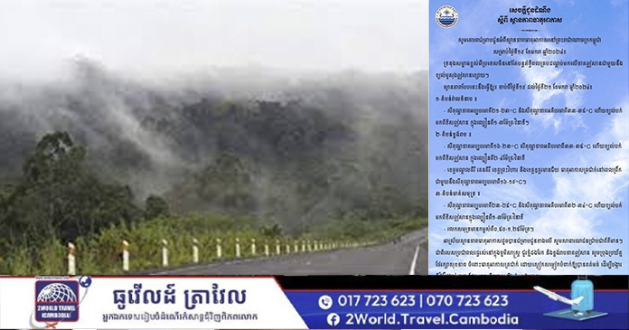 ស្ថានភាពបែបនេះនឹងធ្វើឱ្យ ធាតុអាកាសត្រជាក់នៅពេលព្រឹក ជាមួយនឹងសីតុណ្ហភាពអប្បបរមាពី១៦-១៩°C នៅតាមជួរភ្នំដងរែក និងខ្ពង់រាបភាគឦសាន ជាពិសេសខេត្តមណ្ឌលគិរី រតនគិរី ខេត្តព្រះវិហារ និងខេត្តឧត្តរមានជ័យ។