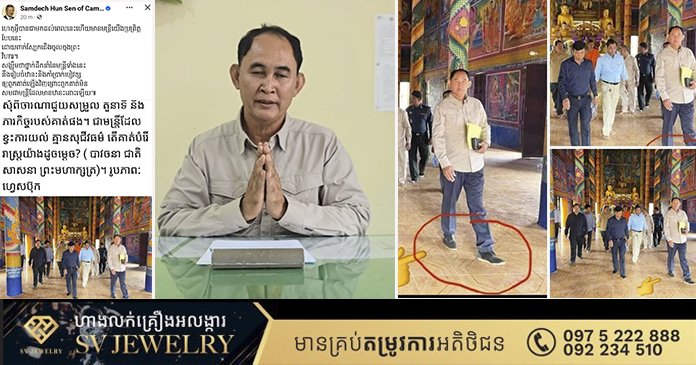 ភ្នំពេញ ៖ សម្តេចតេជោ ហ៊ុន សែន បានបង្ហាញការប្រតិកម្មចំពោះមន្ត្រីមួយរូបដែលពាក់ស្បែកជើង ចូលក្នុងព្រះវិហារដែលជាទីគោរពសក្ការៈរបស់បងប្អូនប្រជាពលរដ្ឋ។