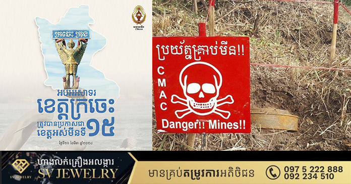 ក្រចេះ ៖ នៅថ្ងៃទី២៦ ខែមីនា ឆ្នាំ២០២៤ គឹជាថ្ងៃប្រវត្តិសាស្រ្ត ដែលប្រជាជនខេត្តក្រចេះ បានទទួលនូវសេរីភាពរួចចាកផុតពីគំរាមកំហែងដោយសារមីន ហើយខេត្តក្រចេះ គឺជាខេត្តទី១៥ ដែលត្រូវប្រកាសជាខេត្តអស់មីននៅទូទាំងព្រះរាជាណាចក្រកម្ពុជា។