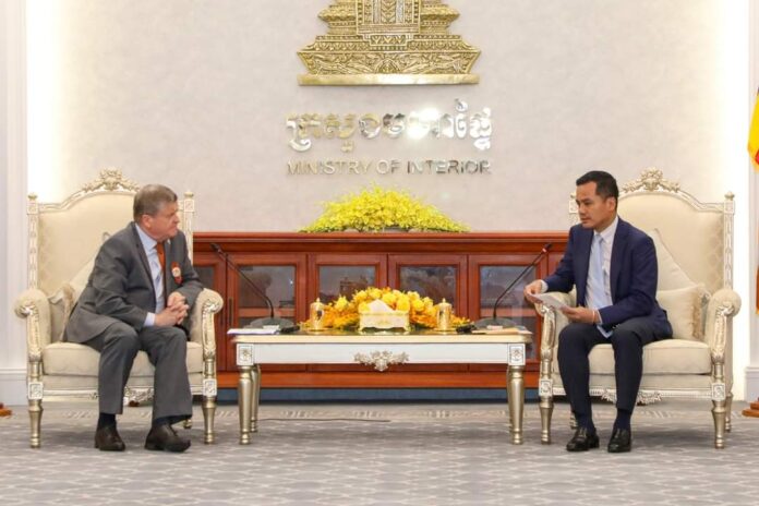 ភ្នំពេញ៖ នារសៀលថ្ងៃចន្ទ ទី៦ ខែឧសភា ឆ្នាំ២០២៤នេះ ឯកឧត្តមអភិសន្តិបណ្ឌិត ស សុខា ឧបនាយករដ្ឋមន្ត្រី រដ្ឋមន្ត្រីក្រសួងមហាផ្ទៃ បានអនុញ្ញាតឲ្យ ឯកឧត្តម Anatoly Borovik ឯកអគ្គរដ្ឋទូតរូស្ស៊ី ចូលជួបសម្តែងការគួរសម និងពិភាក្សាការងារ នៅទីស្តីការក្រសួងមហាផ្ទៃ ។