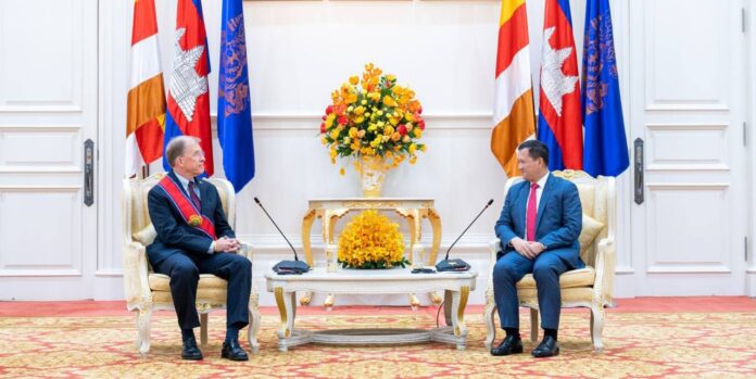 នារសៀល ថ្ងៃទី៧ ខែឧសភា ឆ្នាំ២០២៤ សម្តេចមហាបវរធិបតី ហ៊ុន ម៉ាណែត នាយករដ្ឋមន្រ្តី នៃព្រះរាជាណាចក្រកម្ពុជា បានអនុញ្ញាតឱ្យ ឯកឧត្តម ផាទ្រីក មើហ្វី (W. Patrick Murphy) ឯកអគ្គរដ្ឋទូតសហរដ្ឋអាមេរិក ប្រចាំព្រះរាជាណាចក្រកម្ពុជា ចូលជួបសម្តែងការគួរសម និងជម្រាបលា នៅវិមានសន្តិភាព។