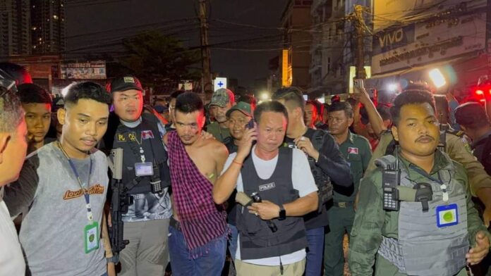 ស្នងការដ្ឋាននគរបាលរាជធានីភ្នំពេញ បានឲ្យដឹងថា ជនសង្ស័យម្នាក់ ត្រូវបានកម្លាំងជំនាញនៃស្នងការដ្ឋាននគរបាលរាជធានីភ្នំពេញ ឃាត់ខ្លួននៅចំណុចផ្សារសាំហាន់ សង្កាត់ទួលសង្កែទី១ ខណ្ឌឫស្សីកែវ បន្ទាប់ពីបាញ់ តដៃជាមួយសមត្ថកិច្ចជាច្រើនគ្រាប់។ ប្រតិបត្តិការនេះបញ្ជាដឹកនាំផ្ទាល់ដោយឯកឧត្តម ឧត្តមសេនីយ៍ឯក ជួន ណារិន្ទ អគ្គស្នងការរង និងជាស្នងការនគរបាលរាជធានីភ្នំពេញ។ ជនសង្ស័យខាងលើជាបក្ខពួកជាមួយជនសង្ស័យដែលផ្ទុះអាវុធ បណ្តាលឱ្យយុវជនម្នាក់ រងរបួស នៅសង្កាត់ស្រះចក ខណ្ឌដូនពេញ នៅវេលាម៉ោង ១:៤០នាទីរំលងអធ្រាត្រឈានចូលថ្ងៃទី៧ ខែឧសភា ឆ្នាំ២០២៤ ។ ដោយឡែកនៅយប់ថ្ងៃដដែលនេះផងដែរ ជនសង្ស័យម្នាក់ទៀតដែលជាជនដៃដល់បាញ់ បង្កឲ្យរងរបួស យុវជនម្នាក់នៅសង្កាត់ស្រះចក ខណ្ឌដូនពេញនោះ ក៏ត្រូវបានកម្លាំងនាយកដ្ឋាននគរបាលព្រហ្មទណ្ឌ សហការជាមួយអធិការដ្ឋាននគរបាលខណ្ឌដូនពេញ បង្រ្កាបចាប់ឃាត់ខ្លួនបានហើយផងដែរ នៅខណ្ឌចំការមន៕