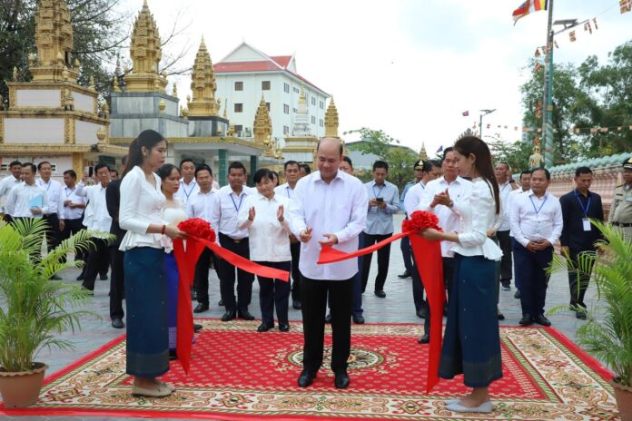 ឯកឧត្តម ហ៊ុន ម៉ានី ឧបនាយករដ្ឋមន្រ្តី រដ្ឋមន្រ្តីក្រសួងមុខងារសាធារណៈ នៅក្នុងបរិវេណវត្តអង្គតាម៉ិញ។