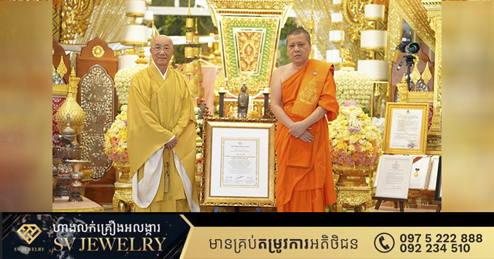 ទន្ទឹមនឹងនេះ ឯកឧត្តម វង្សី វិស្សុត បានឆ្លៀតយកឱកាសនោះ ថែ្លងអំណរគុណដ៏ជ្រាលជ្រៅចំពោះអង្គការជំនួបកំពូលពុទ្ធសាសនា និងសន្និសីទកំពូលពុទ្ធសាសនាពិភពលោក ដែលបានថ្វាយ ព្រះករុណាព្រះបាទសម្តេចព្រះ នរោត្តម សីហនុ ព្រះមហាវីរក្សត្រ ព្រះវររាជបិតាឯករាជ្យ បូរណភាពទឹកដី និងឯកភាពជាតិខ្មែរ “ព្រះបរមរតនកោដ្ឋ” នូវគោរមងារកិត្តិយស ជា“ព្រះបិតាដ៏ឧត្តុង្គឧត្តមបំផុតនៃពុទ្ធសាសនាពិភពលោក” និងបានថ្វាយ ព្រះករុណាព្រះបាទសម្តេចព្រះបរមនាថ នរោត្តម សីហមុនី ព្រះមហាក្សត្រ នៃព្រះរាជាណាចក្រកម្ពុជា ជាទីគោរពសក្ការៈដ៏ខ្ពង់ខ្ពស់បំផុត នូវគោរមងារកិត្តិយសជា“ព្រះស្រីលោកធម្មិករាជ” ។ ជាមួយគ្នានេះ អង្គការជំនួបកំពូលពុទ្ធសាសនាក៏បានដង្ហែនូវចំណែកនៃព្រះអដ្ឋិធាតុព្រះករុណាព្រះបាទសម្តេចព្រះ នរោត្តម សីហនុ ព្រះមហាវីរក្សត្រ “ព្រះបរមរតនកោដ្ឋ” យកទៅតម្កល់នៅមហាសាលរាជវាំងព្រះពុទ្ធសាសនា ដែលត្រូវបានកសាងឡើងឧទ្ទិសថ្វាយអង្គសម្ដេចឳ ព្រះបរមរតនកោដិ ហើយក៏នឹងគ្រោងនឹងដង្ហែនូវចំណែកនៃព្រះអដ្ឋិធាតុរបស់សម្ដេចព្រះមហាសង្ឃរាជ យកទៅប្រតិស្ឋាននៅមហាសាលរាជវាំងព្រះពុទ្ធសាសនា ដើម្បីធ្វើសក្ការបូជាផងដែរ៕ រក្សាសិទ្ធដោយ ៖ សុទ្ធលី