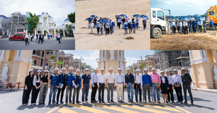 (ភ្នំពេញ)៖ កាលពីរសៀលថ្ងៃទី២៦ ខែកក្កដា ឆ្នាំ២០២៤ គណៈប្រតិភូនៃក្រសួងដែនដីនគរូបនីយកម្ម និង សំណង់ ឯកឧត្តម ហង្ស សុតសំភារ អគ្គលេខាធិការនៃគណៈស្ថាបត្យករកម្ពុជា បានដឹកនាំគណៈប្រតិភូដែលជាគណៈកម្មការមេប្រយោគក្នុងការវាយតម្លៃកម្មវិធីប្រកួតប្រជែងវគ្គផ្តាច់ព្រ័ត្ររចនាលើគម្រោង «ឧទ្យានបៃតងក្នុងសហគមន៍អ្នករស់នៅបុរី មេគង្គ លែន» ដែលលាតសន្ធឹងលើផ្ទៃដី ៥ហិកតា របស់គម្រោងធំទី៣ «មេគង្គ ស៊ីធី» នៃបុរី មេគង្គ លែន ដែលស្ថិតតាមបណ្តោយផ្លូវជាតិ ៦A។