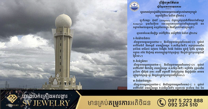 ភ្នំពេញ៖ ក្រសួងធនធានទឹក និងឧតុនិយម បានចេញសេចក្តីជូនដំណឹង អំពីស្ថានភាពធាតុអាកាសនៅកម្ពុជា សម្រាប់ថ្ងៃទី២០ ខែសីហា ឆ្នាំ២០២៤ ៖