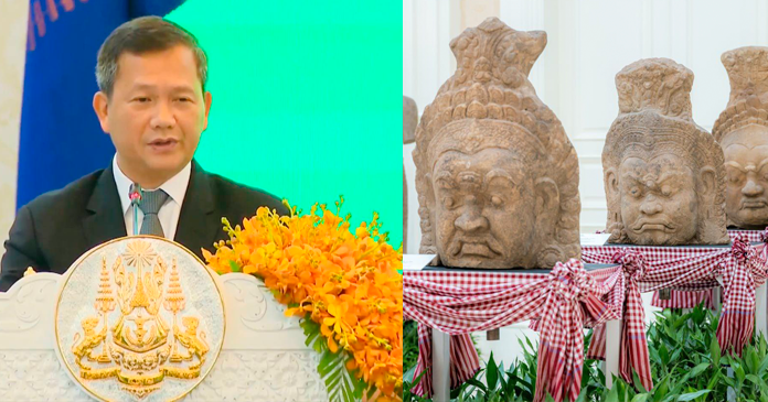 នេះជាការថ្លែងរបស់សម្ដេចធិបតី ហ៊ុន ម៉ាណែត នាយករដ្ឋមន្រ្តីនៃកម្ពុជា ក្នុងពិធីទទួលវត្ថុបុរាណខ្មែរ នាព្រឹកថ្ងៃទី២២ ខែ សីហា ឆ្នាំ ២០២៤ នៅវិមានសន្តិភាព។ សម្តេចធិបតី ហ៊ុន ម៉ាណែត បានថ្លែងថា “ខ្ញុំសូមអំពាវនាវដល់សារមន្ទីរ ស្ថាប័ននានា និង អ្នករក្សាទុកវត្ថុបុរាណខ្មែរ សូមមេត្តាបន្តប្រគល់វត្ថុទាំងនោះដោយស្ម័គ្រចិត្តជូនមកកម្ពុជាវិញ។