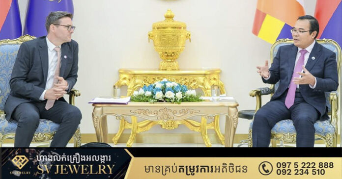 ភ្នំពេញ ៖ នៅទីស្តីការក្រសួង នាព្រឹកថ្ងៃព្រហស្បតិ៍ ទី២៩ ខែសីហា ឆ្នាំ២០២៤នេះ ឯកឧត្តម ថោ ជេដ្ឋា រដ្ឋមន្ត្រីក្រសួងធនធានទឹក និងឧតុនិយមបានអនុញ្ញាតឱ្យលោក Emmanuel DOLLFUS នាយកស្ដីទីនៃទីភ្នាក់ងារបារាំងសម្រាប់អភិវឌ្ឍន៍(AFD) ដឹកនាំគណៈប្រតិភូចូលជួបសម្ដែងការគួរសម និងពិភាក្សាអំពីគម្រោងអភិវឌ្ឍន៍នានាលើវិស័យធនធានទឹក និងឧតុនិយមនៅកម្ពុជា។