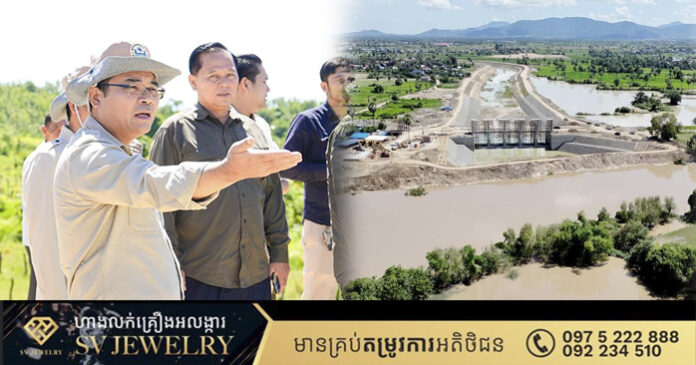 នៅរសៀលថ្ងៃដដែល ឯកឧត្តមរដ្ឋមន្ត្រី និងក្រុមការងារបានអញ្ជើញចុះពិនិត្យវឌ្ឍនភាពគម្រោងសាងសង់សំណង់ស្ទាក់ទឹក និងប្រព័ន្ធរំដោះទឹកស្ទឹងតូច ក្នុងឃុំរលាំងចក ស្រុកសំរោងទង ខេត្តកំពង់ស្ពឺ។