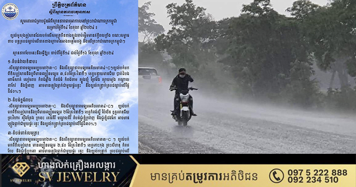 ភ្នំពេញ ៖ ក្រសួងធនធានទឹក និងឧតុនិយម ជម្រាបជូនអំពីស្ថានភាពធាតុអាកាសនៅព្រះរាជាណាចក្រកម្ពុជាសម្រាប់ថ្ងៃទី១៤ ខែតុលា ឆ្នាំ២០២៤៖