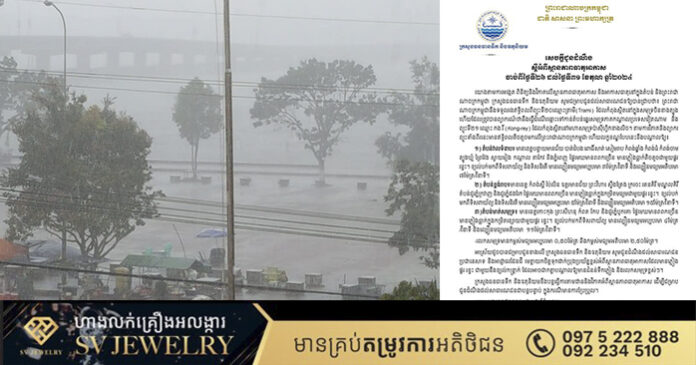 ភ្នំពេញ ៖ ក្រសួងធនធានទឹក និងឧតុនិយម ជូនដំណឹង ស្តីអំពីស្ថានភាពធាតុអាកាស ចាប់ពីថ្ងៃទី២៦ ដល់ថ្ងៃទី៣១ ខែតុលា ឆ្នាំ២០២៤។ ក្រសួងធនធានទឹក សូមជម្រាបជូនដល់សាធារណជនឱ្យបានជ្រាបថា៖ ព្រះរាជាណាចក្រកម្ពុជា នឹងទទួលរងឥទ្ធិពលពីព្យុះទី២០ឈ្មោះត្រាមី(Trami) ដែលកំពុងស្ថិតនៅក្នុងសមុទ្រចិនខាងត្បូង ហើយដែលត្រូវបានព្យាករណ៍ថានឹងធ្វើដំណើរឆ្ពោះទៅកាន់តំបន់ឆ្នេរសមុទ្រភាគកណ្តាលប្រទេសវៀតណាម និងព្យុះទី២១ ឈ្មោះ កង រី (Kong-rey) ដែលកំពុងស្ថិតនៅមហាសមុទ្រប៉ាស៊ីហ្វិកខាងលិច៕ រក្សាសិទ្ធដោយ ៖ សុទ្ធលី